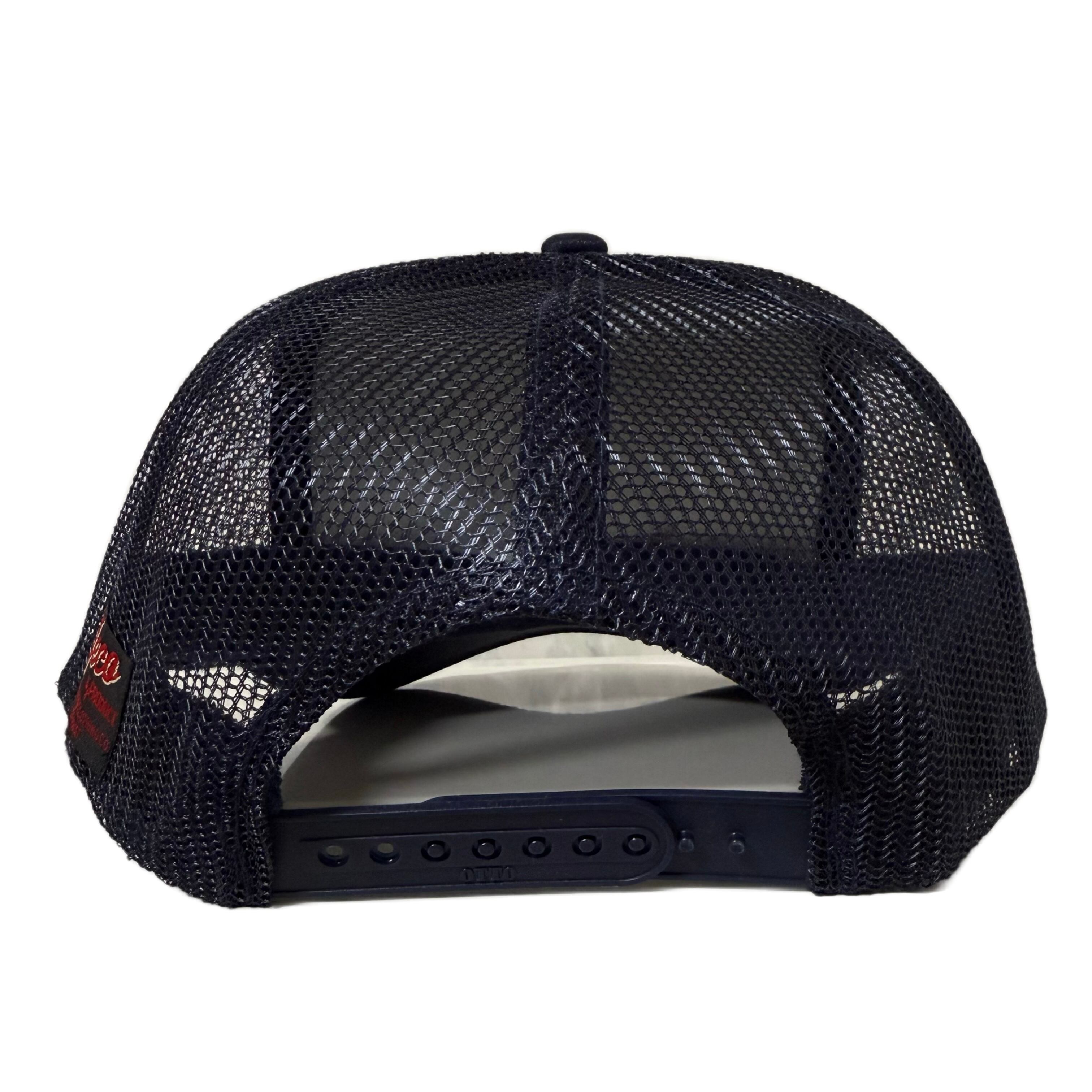 キャップ内側にはコットン製のパイル汗止め付きで、かつ深めの帽体で玄人はもちろんメッシュキャップ入門者にもかなりオススメです!前頭葉部分が少し角張った印象、 7ホール・スナップバック装備で様々なサイズ変更が可能。