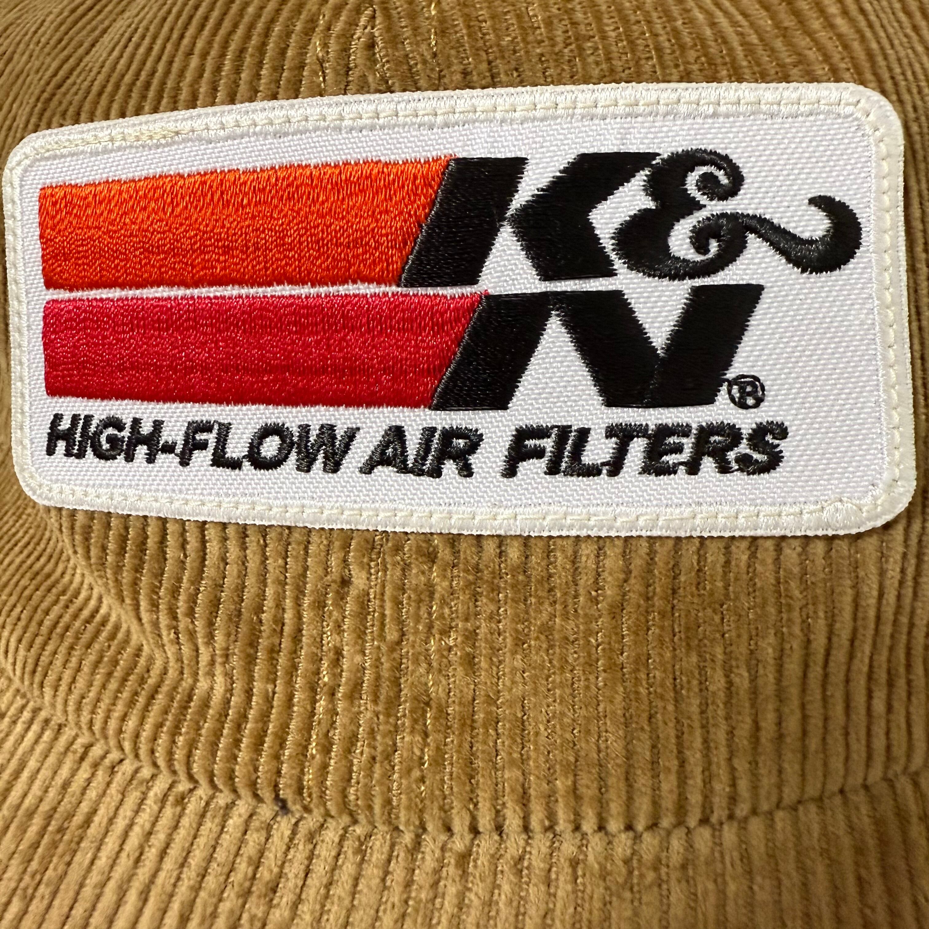 秋冬雰囲気満点のタンカラーコーデュロイキャップにモーター系パッチを装備した珍しい逸品。
