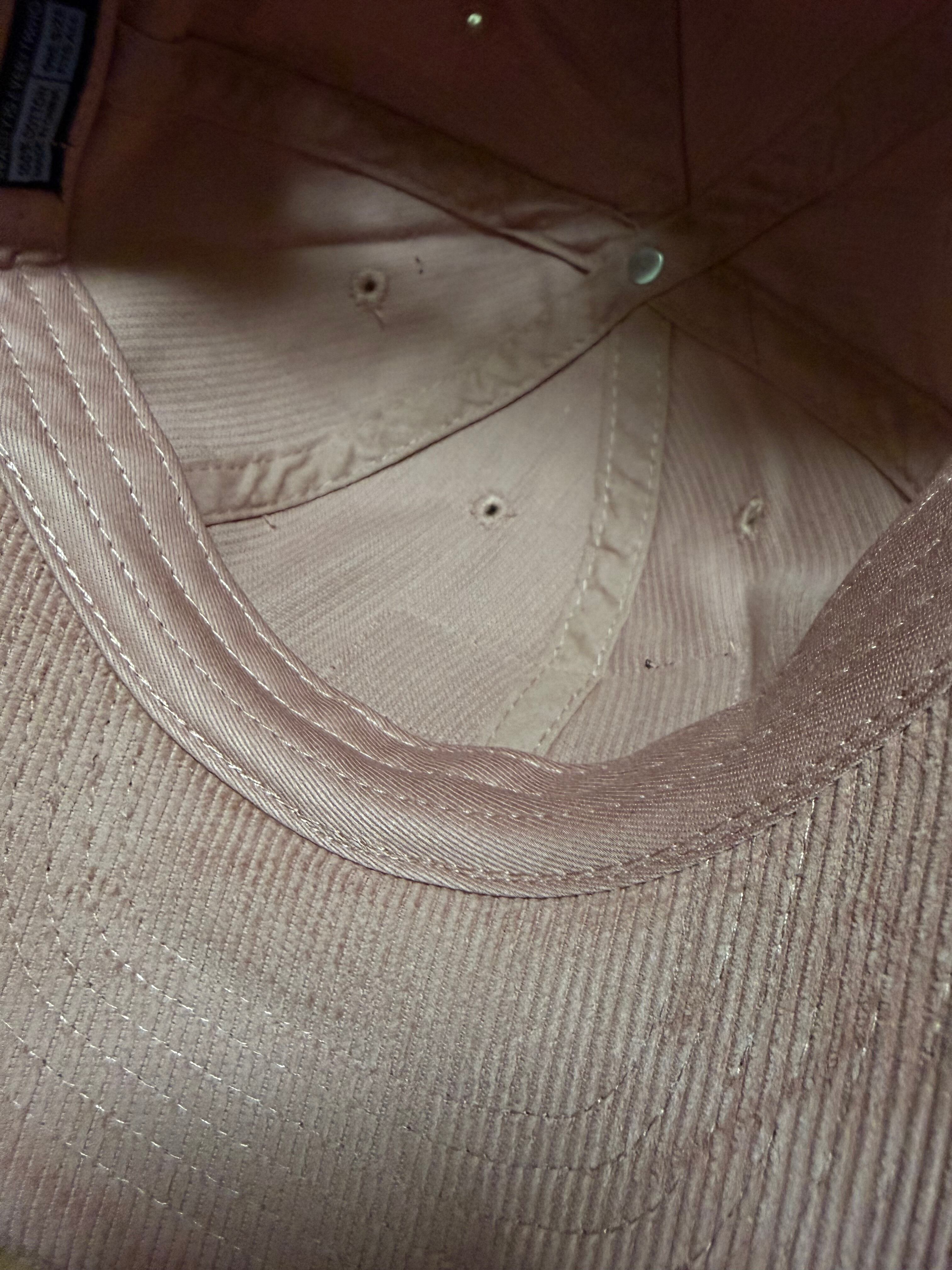 珍しいスモークピンクのコーデュロイキャップにモーター系パッチを装備した珍しい逸品。
