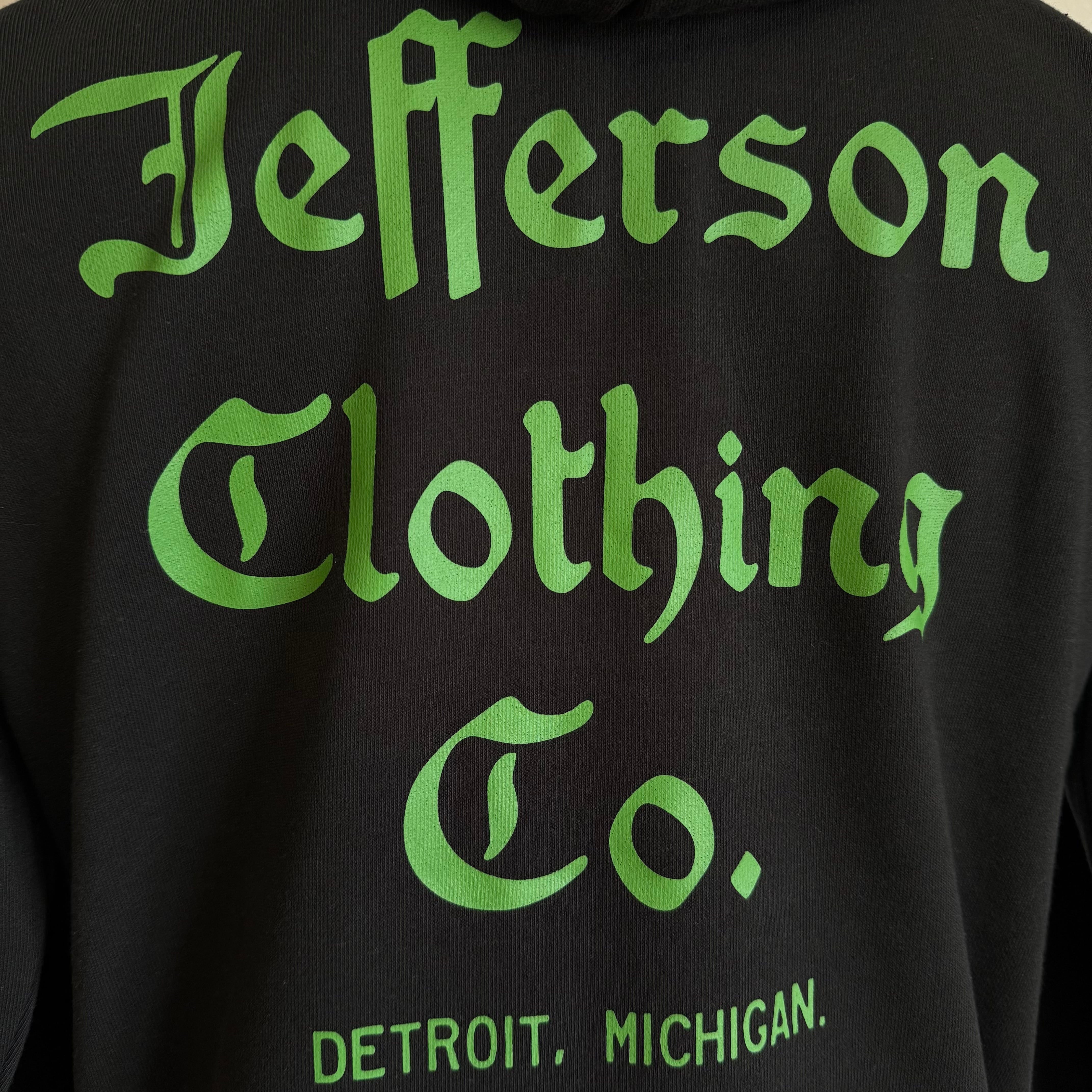 バックにはブランドロゴ、フロントにはブランドロゴ&ジェファーソンクロージングの人気キャラ、ダンシングスカルが2人で疾走するデザイン。