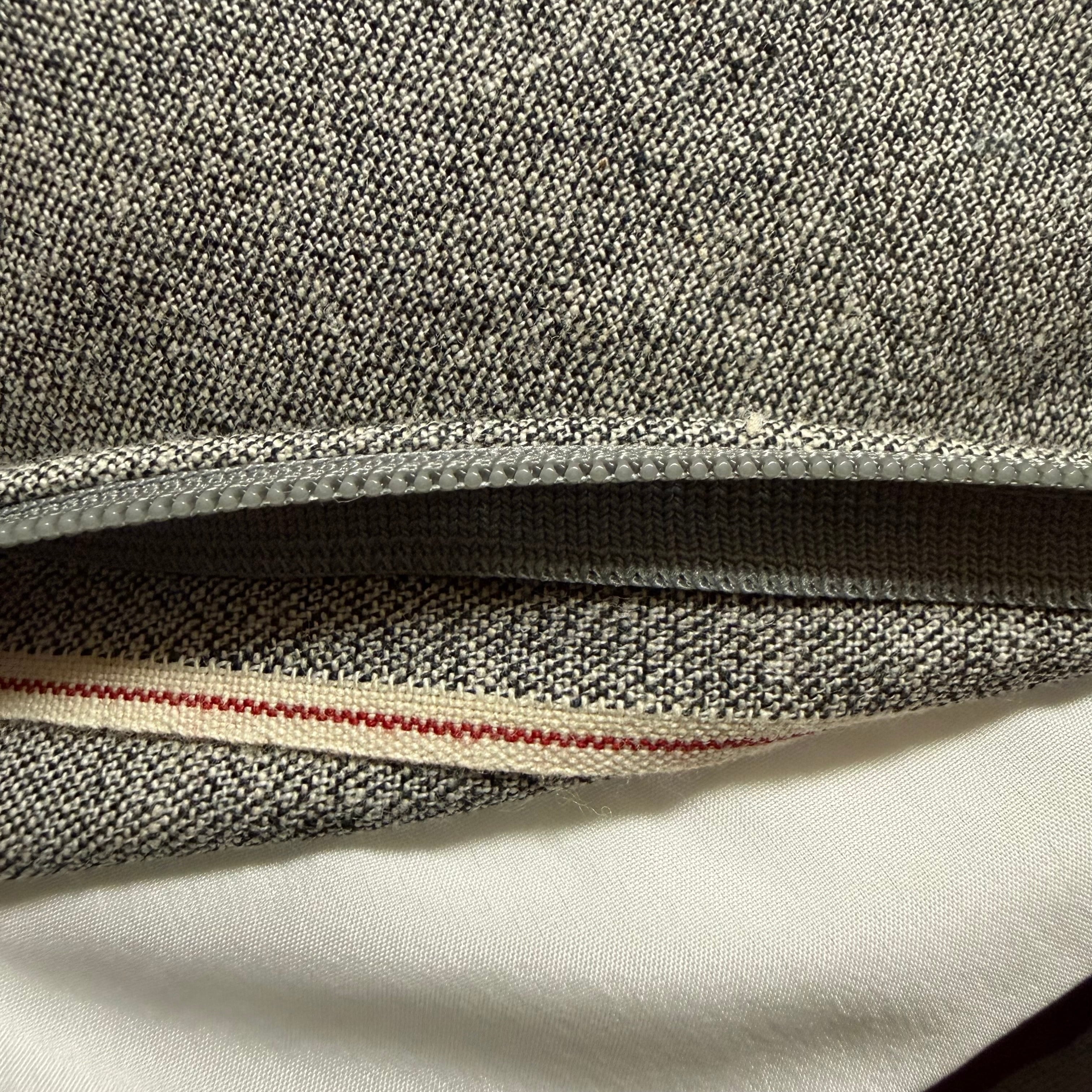 下部にインナークッションを入れる為のYKKジッパーを装備。その裏には旧式力織機で織られた証でもある、生地耳が付いている。