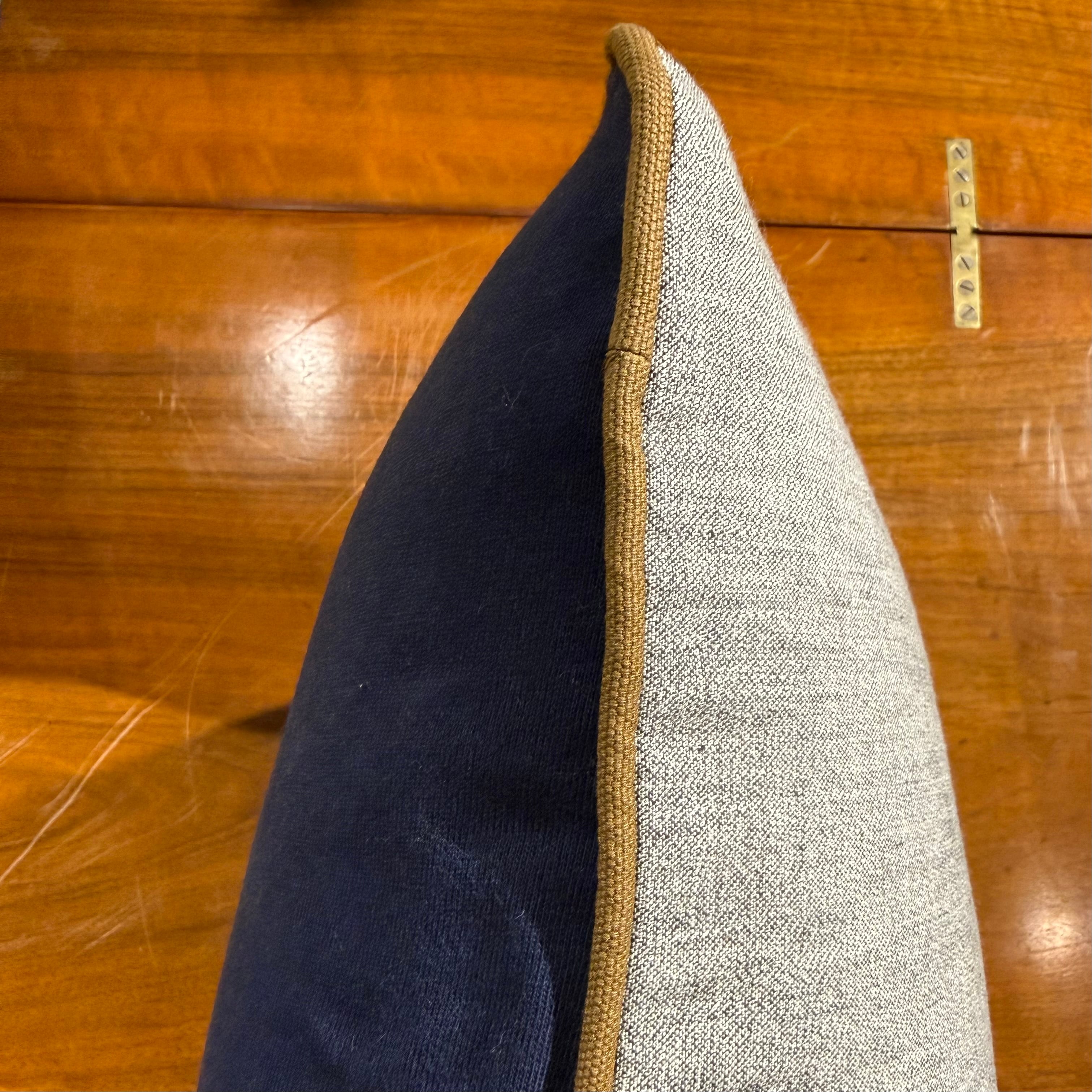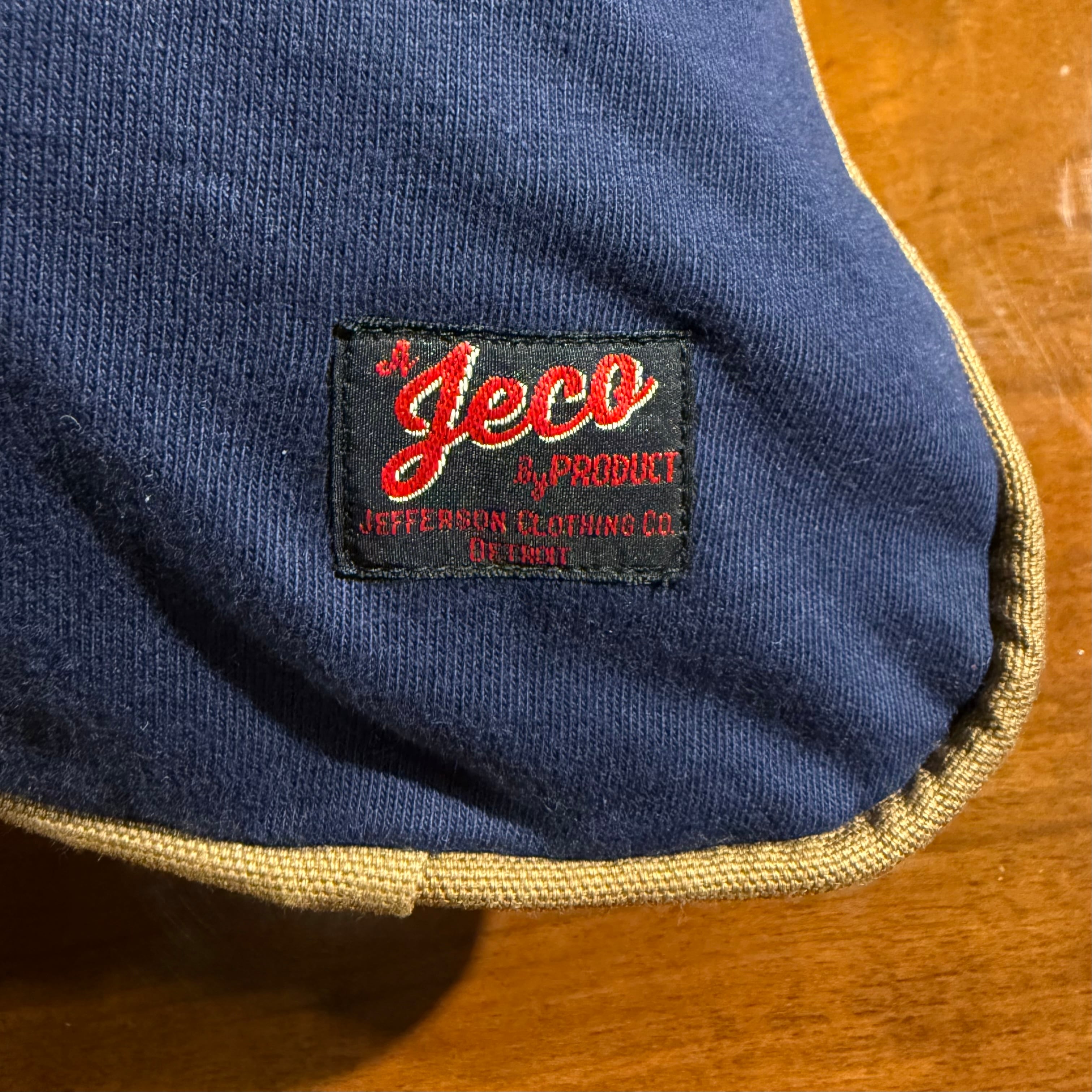 フロントはジェファーソンクロージングのプリントを施し、バックには上質なホワイトペッパーシャンブレー生地を使用。パイピングはライトブラウン。