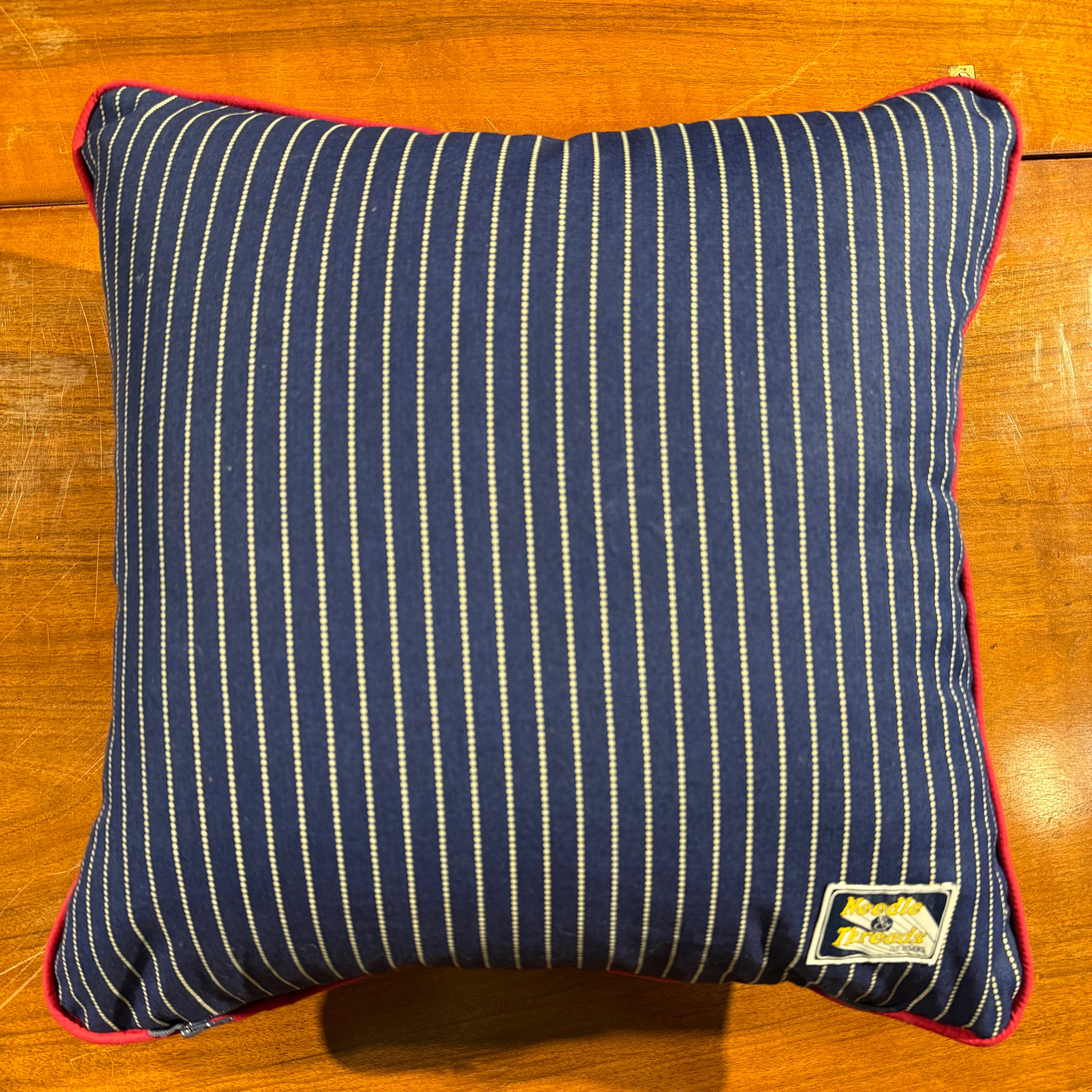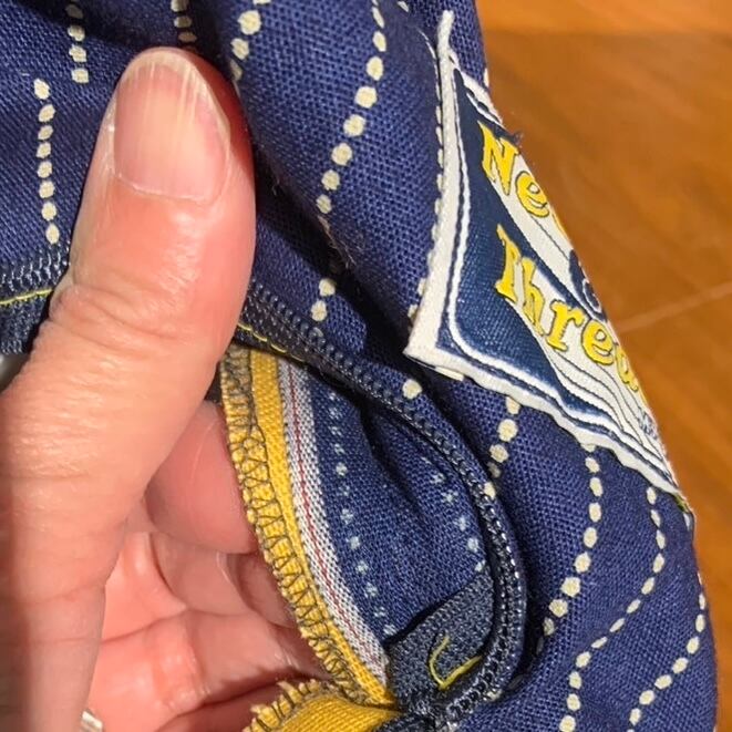 下部にインナークッションを入れる為のYKKジッパーを装備。裏には旧式力織機(生地幅の狭い古き良き時代に使われていた機械。)で織られた証でもある、豪華生地耳が付いている。
